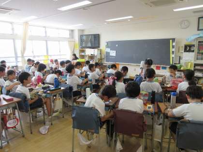 11日(水)はお弁当持参期間の7日目です。本校ではB時程のため、いつもより10分早く「いただきます」をしました。今日も子どもたちの笑顔が広がるお弁当の時間でした。写真は上から、1年生、4年生、6年生の様子です。
