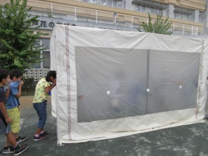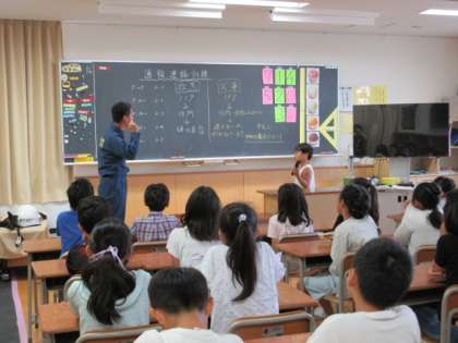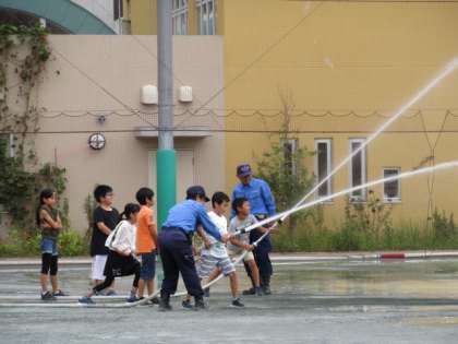 2年生は校庭に設けられたテントで「煙中訓練」をしました。ハンカチ等で口を押さえ、腰を低くして壁伝いに歩くことを教えていただきました。3年生は、算数教室で「通報連絡訓練」をクラス単位で行いました。成城消防署の方にご指導をいただきました。火事の場合と事故の場合とに分けて通報のやりとりをしました。4年生は、校庭でDポンプ体験をしました。ホースから勢いよく出てくる水の力を感じていました。地域の粕谷会の皆様にお世話になりました。