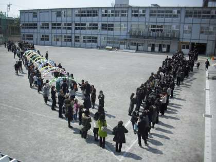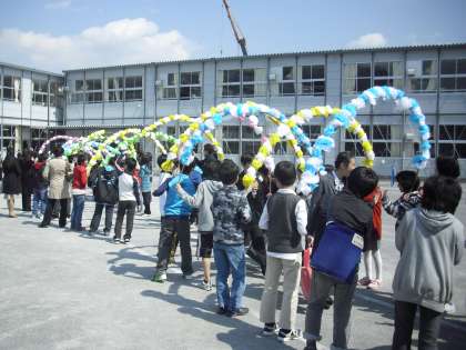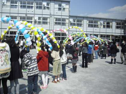 5年生に、保護者に、中学校の先生方に、生徒に、新BOPの子どもたちや指導員の方に、本校の教職員に見送られる卒業生。一人一人が晴れやかな表情です。卒業生の皆さんおめでとう、そして、ありがとう。皆さんの思いは在校生が引き継ぎます。