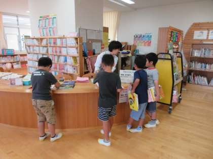 17日(火)の1時間目、1年1組は図書の時間でした。順番に本を返したり、本を借りたりしていました。図書カードの記入も上手にできるようになっています。