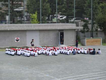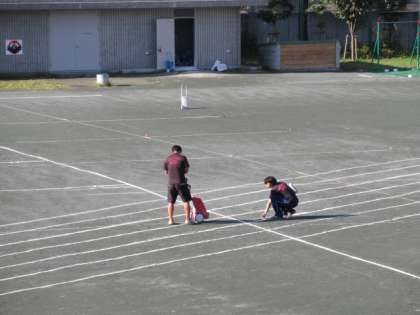 17日(火)の朝7時半前から先生方が校庭に出て100m走用のラインを引いたり、必要なところに印を打ったりしていました。5・6時間目に予定している6年生の体育の準備です。いよいよ10月に開催される「連合運動会」に向けての練習が始まりました。今回は、100走のタイムを計りました。。