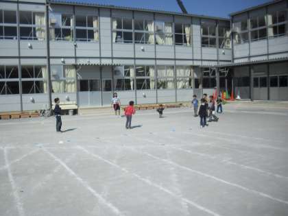 新BOPの子どもたちが楽しそうに遊んでいる様子です。元気な声が校庭に響き渡っています。よく見ると新1年生の姿も見えます。すっかり芦花小学校の一員になったようです。もうすぐ新学期が始まります。