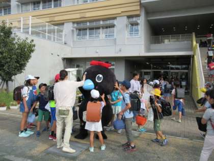 19日(木)、あいさつキャンペーンの4日目です。北門には、地域の方と5年生が並んで、登校する子どもたちを迎えました。からぴょんは、南門から登校する子どもたちを迎えました。子どもたちは大喜びでからぴょんのそばに行き、手を振ったり、なでたりしていました。
