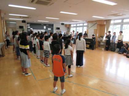 21日(土)は授業日ではありませんでしたが、合唱団の練習が午前8時30分からありました。午前10時からは、普段練習をしている第一音楽室でミニコンサートを行いました。2学期になって練習した成果を披露しました。発声練習で歌う「山の朝」、次の発表会に向けて取り組んでいる「森のひびき」の2曲を保護者の皆様にお聴きいただきました。その後、保護者会を開きました。保護者の皆様には、休日にも関わらすご出席いただきましてありがとうございました。