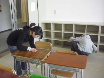 新6年生の前日登校の活動の様子です。芦花小の最高学年となった6年生。明日から学校生活をスタートさせることができるように、各教室に分散して教室をきれいにしているところです。