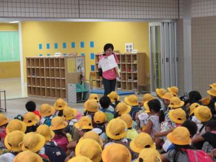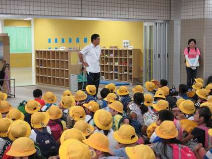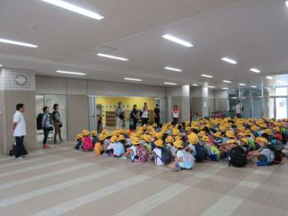 24日(火)の午後1時50分、遠足に出かけた1年生が元気に帰ってきました。気温の上昇がありましたが、最後まで歩くことができました。1階ピロティで「終わりの会」をしましたが、「ありがとうございました。」のあいさつもしっかり言えました。