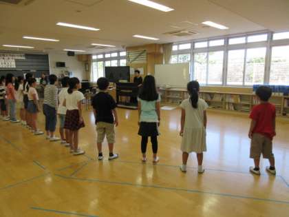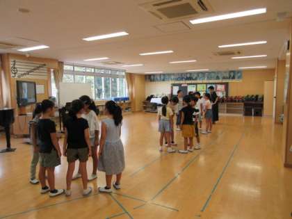 25日(水)午前7時30分から合唱団の3年生を対象にした朝練習がありました。5年生と6年生が6名、自主的に練習に参加していました。腹筋を鍛えたり、発声練習をしたりしました。その後、「森のひびき」の「見よ、見よ」の部分練習をしました。上級生がグループに入り、音程がとれているかどうかを聞いていました。