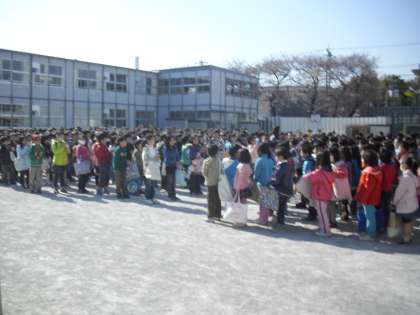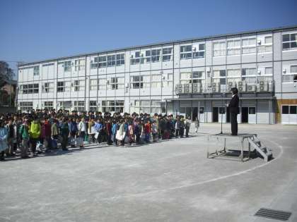 平成23年度 第1学期の始業式の様子です。いよいよ新年度を迎えました。仮設校舎で生活する最後の1年でもあります。1学年進級した子どもたちの表情はたくましかったです。渡部校長は、入学式に在校生代表として参加する2年生と6年生に励ましのエールを送りました。