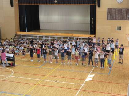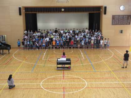26日(木)の5時間目、6年生全員で音楽朝会に向けた練習をしました。「空も飛べるはず」を歌いました。気持ちを開放するために、体育館のフロアで歌ったり、体を少し揺らしたりしました。27日(金)の本番に向けて、自信をつけることができました。