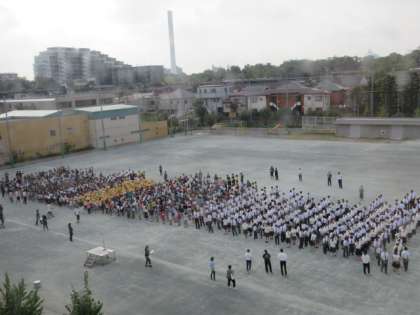 30日(月)、校庭で小中合同朝会がありました。今回は中学校の副校長先生のお話でした。「中学生は学芸発表会に向けて、小学生は学芸会に向けてそれぞれ頑張りましょう。」という内容でした。
