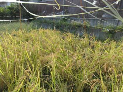 5年生が総合的な学習の時間に育ててきた「稲作」も実りの時期を迎えています。10日(木)に稲刈りを予定しています。写真は、30日(月)の様子です。