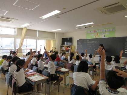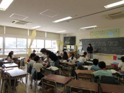 2日(水)の3時間目、4年3組、4組、5組は算数の時間でした。4クラスに分かれて学習をしています。「わり算のきまり」について考えていました。