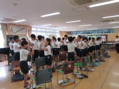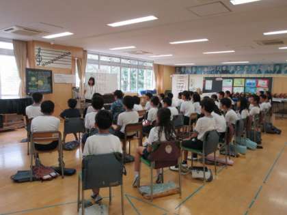 3日(木)の3時間目、6年4組は音楽の時間でした。歌「ふるさと」の学習に初めて取り組みました。写真や映像から日本の風景を感じ取り、歌詞の意味を考えました。「うさぎ追いし かの山」をこれまでの自分の生活に当てはめて「楽しかったな委員会で」「本気で踊ったな運動会で」「肝試ししたなあの宿舎で」等と置き換えることができました。最後に「ふるさと」の1番を歌って録音をし、その歌声から課題を見付けました。
