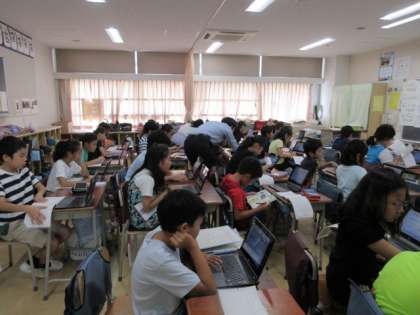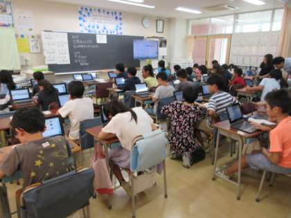 4日(金)の1時間目、4年1組は総合的な学習の時間でした。「オリンピック・パラリンピックの参加国を調べよう」の2回目です。一人1台タブレットを使って、8ヶ国の中から1ヶ国を選んで調べ始めていました。その国の人口、首都、食べ物や言葉などを調べ、「オリ・パラノート」に記録していました。