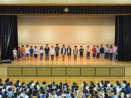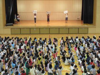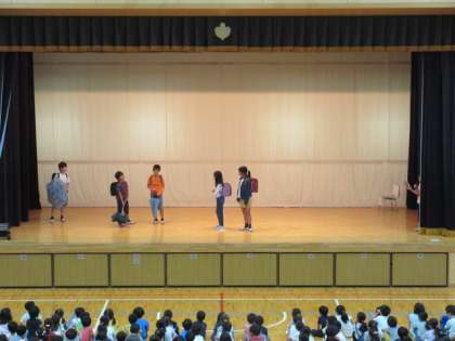 7日(月)の朝は、集会でした。今回は図書委員会の発表でした。低学年、中学年、高学年に分けて、おすすめの本の紹介を劇仕立てで行いました。劇のあとに3択クイズがありましたが、正解率はとても高かったです。