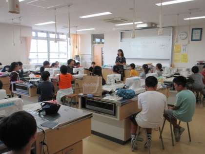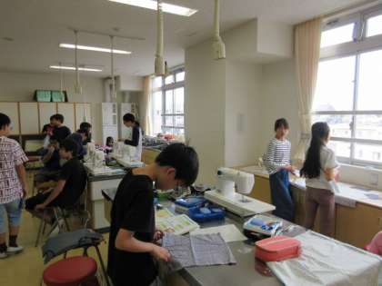 7日(月)の3・4時間目、6年1組は家庭科の時間でした。生活に役立つオリジナルグッズ製作の続きに取り組んでいました。ミシンをかけたり、アイロンを当てたりしながら自分のペースで作っていました。