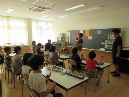 7日(月)の4時間目、ひかり学級の3年生以上は音楽の時間でした。講師の先生とともに、「きのこ」の合奏、「かごめかごめ」の鍵盤ハーモニカに取り組みました。「きのこ」の合奏は、3種類の楽器を順に回しながら、全員ができるようにしていました。