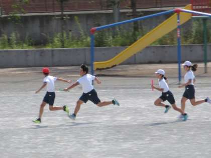 7日(月)のお弁当の時間、6年生はリレーの練習をしました。時間が限られているので、機敏に動いています。今回もバトンパスの練習に取り組み、最後は、2組ずつ走りました。バトンをできるだけ近い距離で受け取れるように気を付けていました。