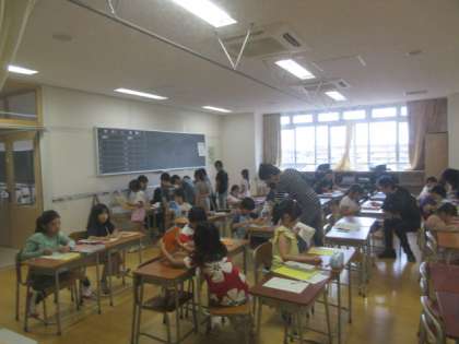 7日(月)の6時間目、2年生と3年生を対象にした「寺子屋クラブ」がありました。算数の勉強を各自のペースで進めています。2年生に3名、3年生に2名の教員がついて指導をします。丸付けは、保護者の皆様にお願いしています。全問正解して花丸をもらったときの笑顔がとてもすてきです。