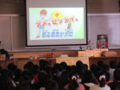 セーフティ教室3時間目は、6年生を対象にした「薬物乱用防止」についての学習でした。成城ライオンズクラブの方を講師にお招きして実施しました。気分がよくなるから、ダイエットできるから等の理由で薬物に手を出してはいけないこと、自分の命はずっとつながって今あること等を学びました。
