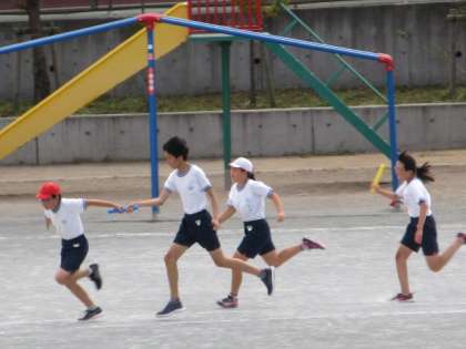 10日(木)のお弁当の時間、6年生はリレーの練習をしました。9日(水)は練習がなかったので、子どもたちも張り切って臨んでいました。バトンパスの練習をしてから、2組ずつ走りました。走り出すタイミングがだいぶつかめてきました。