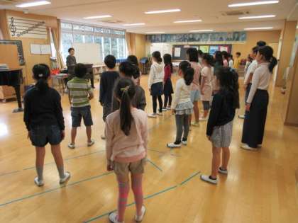 11日(金)、合唱団の朝練習がありました。今回は、「まっかなあき」の歌の練習をしました。3番までの歌詞を覚えるため、リレー唱をしたり、グループで教え合ったりしました。