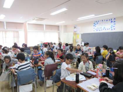 15日(火)、お弁当持参も28日目になりました。今週も子どもたちのお弁当作りをよろしくお願いいたします。写真は上から、1年生、ひかり学級、4年生の様子です。