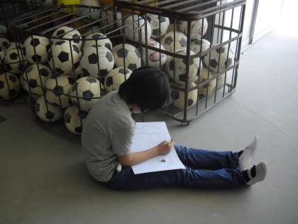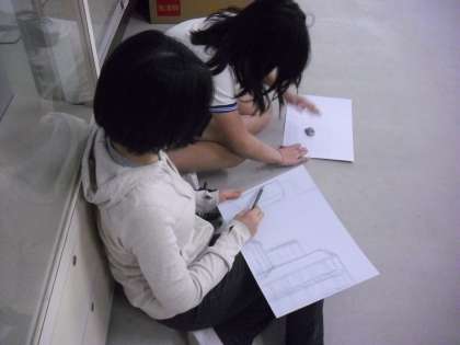 6年生の図画工作の授業の様子です。「見つけたよ!私の好きなこの景色」の制作に取り組んでいるところです。自分が好きな学校の景色をスケッチしています。階段、靴箱、校庭等々、いろいろな場所を描いています。