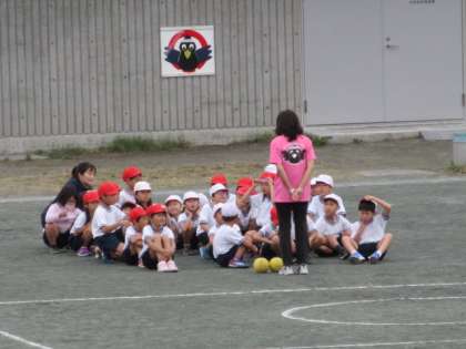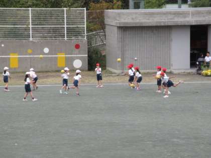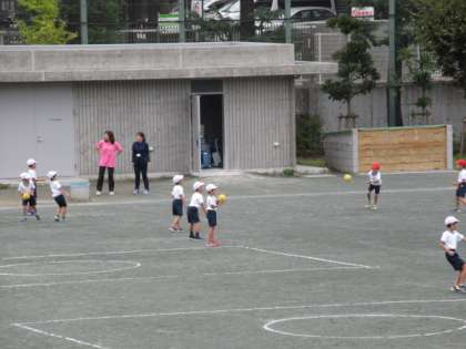 16日(水)の2時間目、2年1組は体育の時間でした。校庭で「ボール遊び」をしていました。