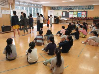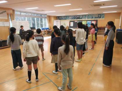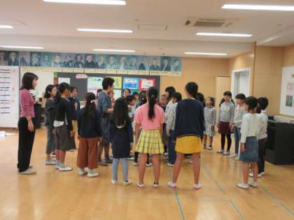 18日(金)、合唱団の朝練習がありました。「森のひびき」の歌では、アルトとソプラノが二重の円を作って音を聞き合っていました。19日(土)にミニコンサートを行うため、プログラムの確認や発表者の言葉の練習もしました。