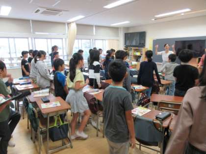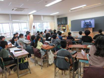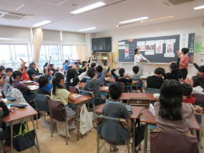 18日(金)の2時間目、5年4組は英語の時間でした。英語専科の先生と英語支援員の先生とで授業をしています。今回は、「can」を使った表現の練習をしました。パラリンピックの話題を中心に、映像を見たり、クイズをしたりしました。