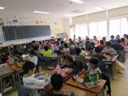 お弁当持参期間も33日目となりました。本日も子どもたちのお弁当作りをありがとうございました。写真は上から、ひかり学級、1年生、2年生の様子です。ひかり学級は、みんなで調理を行いました。今回は、「きのことじゃがいものスープ」と「おこのみサンドイッチ」を作りました。