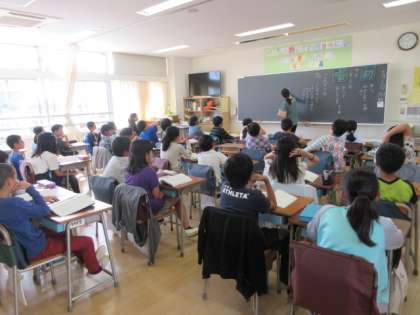 23日(水)の5時間目、4年3組は国語の時間でした。新しい漢字を2つ学習してから、「ごんぎつね」の物語を読んでいました。「くし」「おみやののぼり」など、子どもたちにはわかりにくい言葉を出し合って、一緒に確認していました。
