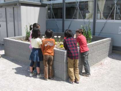 子ども達は花や蝶などを探して写真を撮っていました。