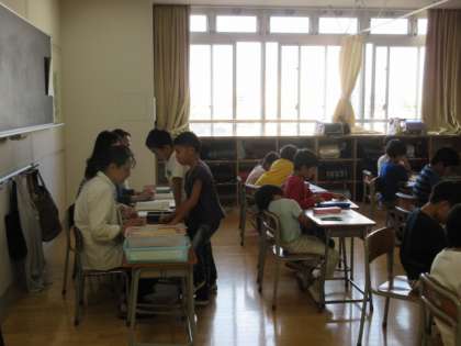28日(月)の6時間目、2年生と3年生を対象にした「寺子屋クラブ」がありました。2年生と3年生は別々の教室で算数の学習をしますが、丸を付けてもらうときには、3年生が2年生の教室に来ます。今回も保護者の皆様方のご協力をいただきました。毎回ありがとうございます。