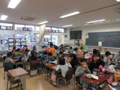 29日(火)、お弁当持参期間の37日目です。今日も子どもたちのお弁当作りをありがとうございました。写真は上から、1年生、2年生、3年生の様子です。