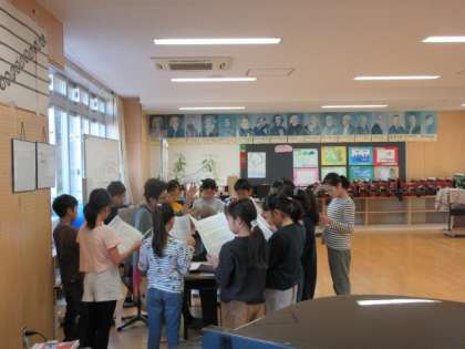 30日(水)、午前7時30分から合唱団の練習がありました。水曜日は3年生の練習日としていますが、3名の上級生が参加していました。「やさしい風」という新しい歌の練習をしました。この曲は子どもたちからリクエストされた中の1曲です。