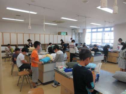 30日(水)の1・2時間目、5年4組は家庭科の時間でした。2学期になってから取り組んできた「オリジナル・クッション」の最終回でした。全員が完成するように頑張っていました。既に完成している人は、フェルトをつかった小物作りに挑戦しました。2時間目に、互いの作品を見合って感想を書いたり、クッションを持った写真を撮影したりしました。