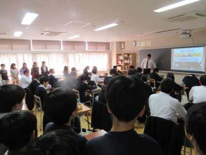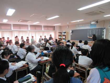 30日(水)の午後、6年生が芦花中学校を訪問しました。最初に中学生の教室に入れていただき、授業の様子を見せていただきました。写真は上から、社会、数学、国語の様子です。