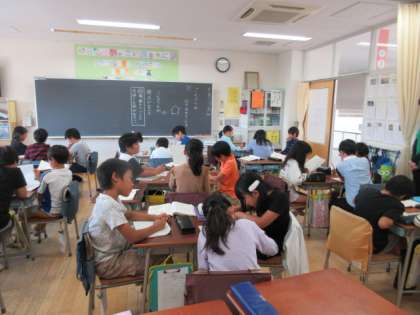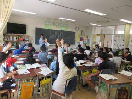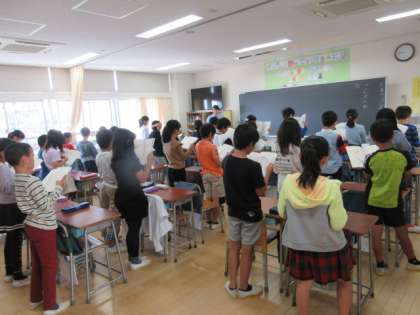 1日(金)の1時間目、4年3組は国語の時間でした。物語「ごんぎつね」の第6場面を読んでいました。ごんの気持ちを考え、その理由を教科書の中から探しました。さらに3人組を作り、互いの考えを発表して、「共感」「なるほど」「くわしく」の3つに分けました。最後に、クラス全体でごんの気持ちをまとめました。