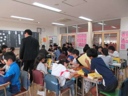 5日(火)の5時間目、6年4組は国語の時間でした。漢字辞典を使って、漢字の成り立ちについて学習しました。漢字を象形、指事、会意、形声の4種類に分類しました。グループ内で、理由を述べながら分類する姿がありました。