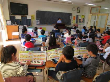 7日(木)の4時間目、1年1組は音楽の時間でした。前半は鍵盤ハーモニカの練習をしました。右手の指を全て使って曲を弾くことができるようになってきました。後半は、学芸会で歌う歌を3曲練習しました。元気よく歌うことができました。