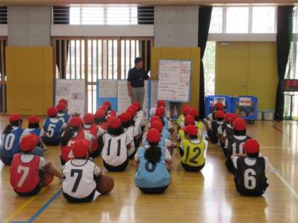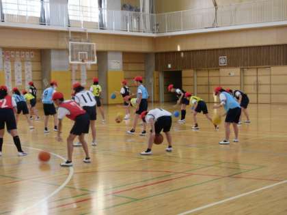 7日(木)の5時間目、6年2組は体育の時間でした。「ゴール型ゲーム」のバスケットボールの第1時間目でした。学習内容を知り、試しのゲームをしました。時間を意識して行動し、3ゲームとも実施することができました。