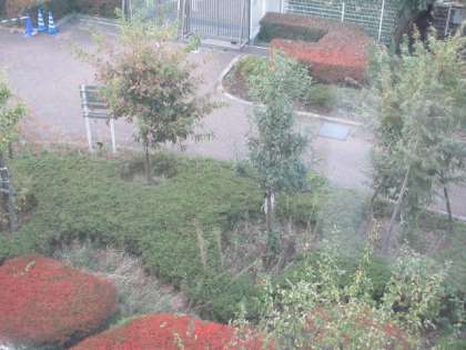 移植する樹木には、既に順番を表す番号がつけられています。16日(土)まで作業をする予定です。その2の写真は3階から撮影しました。その1とともに9日(土)の夕方に撮りました。