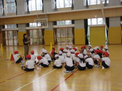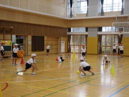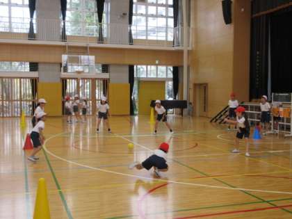 11日(月)の2時間目、3年2組は体育の時間でした。体育館で「フロアボール」に取り組んでいました。チームごとに対戦をしていて、歓声が上がっていました。