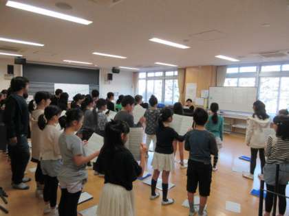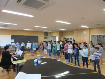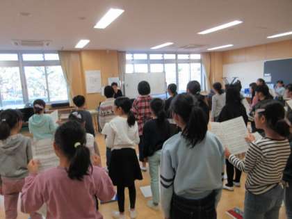 12日(火)の朝、合唱団の練習がありました。「やさしい風」のパートと立ち位置が決まり、子どもたちも張り切って歌っていました。