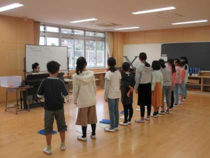 13日(水)の朝、合唱団の5年生を対象にした朝練習がありました。4年生が1人参加していました。「山の朝」を歌いながら、発声の練習をしました。鏡を持って意識して歌うことでことばにつながりが生まれました。