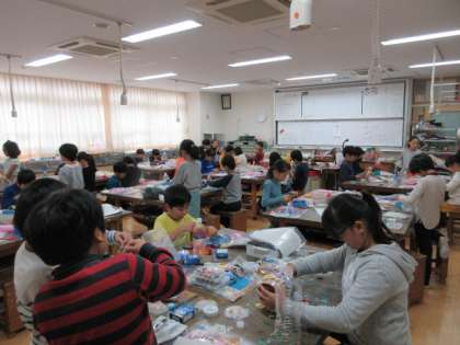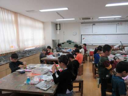 13日(水)の1・2時間目、4年5組は図画工作の時間でした。「ゆめいろランプ」と題して、工作に取り組んでいます。今回はライトをつけて、作ったところまでの光の様子を見ました。