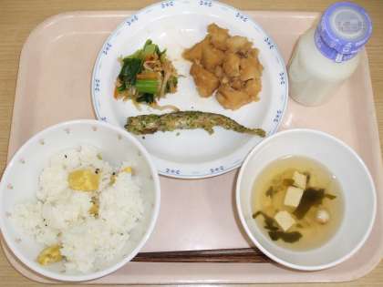 秋の味覚の1つ“栗”を、今日は「栗ごはん」でいただきました。ホクホクしていて甘味のある栗が、コロコロっと入っていました。家庭でも、季節ごとに旬の食材を楽しんでほしいです。
