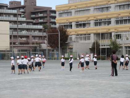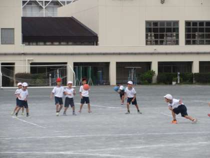 14日(木)の2時間目、1年2組は体育の時間でした。ボール投げ遊びに取り組んでいました。1チームを3〜4人で作り、相手チームとボールの投げ合いをしました。始まるときに「よろしくお願いします。」のあいさつが大きな声で言えました。